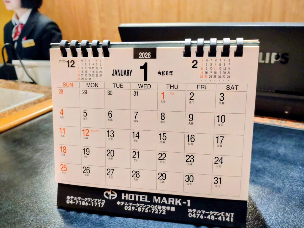 - 毎年この時期に泊った際いただいているマークワンカレンダー、大変重宝しています。