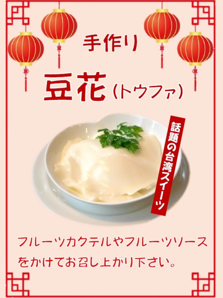 - 台湾スイーツ『豆花』出してます。フルーツカクテル・フルーツソースをかけてお召し上がりください。