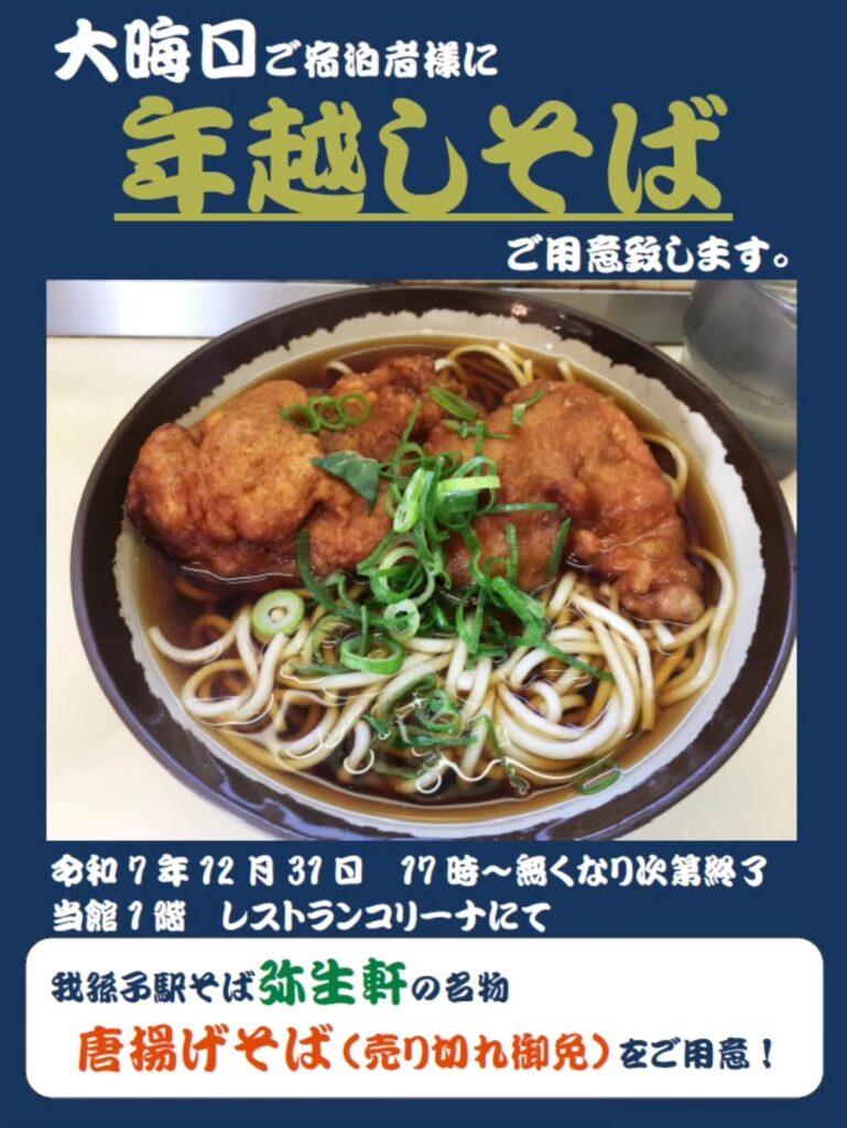 12/31のご宿泊者様限定、17時〜無くなり次第終了となります。