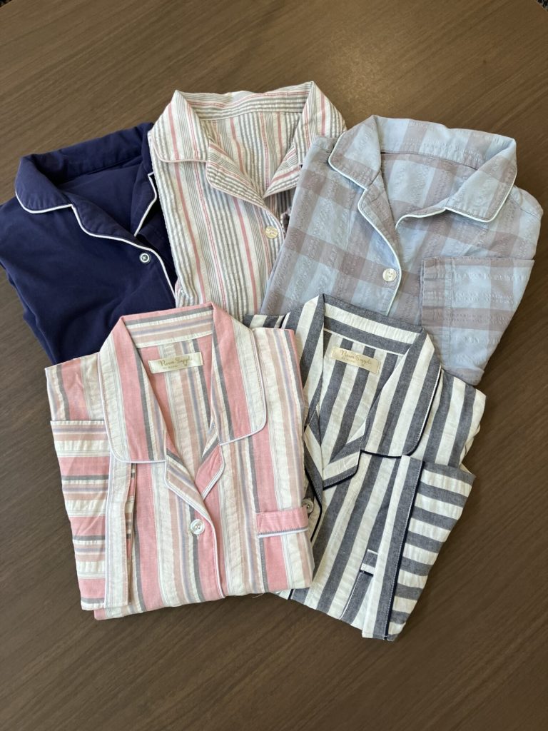 女性の皆様に大変ご好評いただいております貸出パジャマに夏用パジャマを追加いたしました!蒸し暑い日が増えてまいりましたのでぜひご利用ください☆