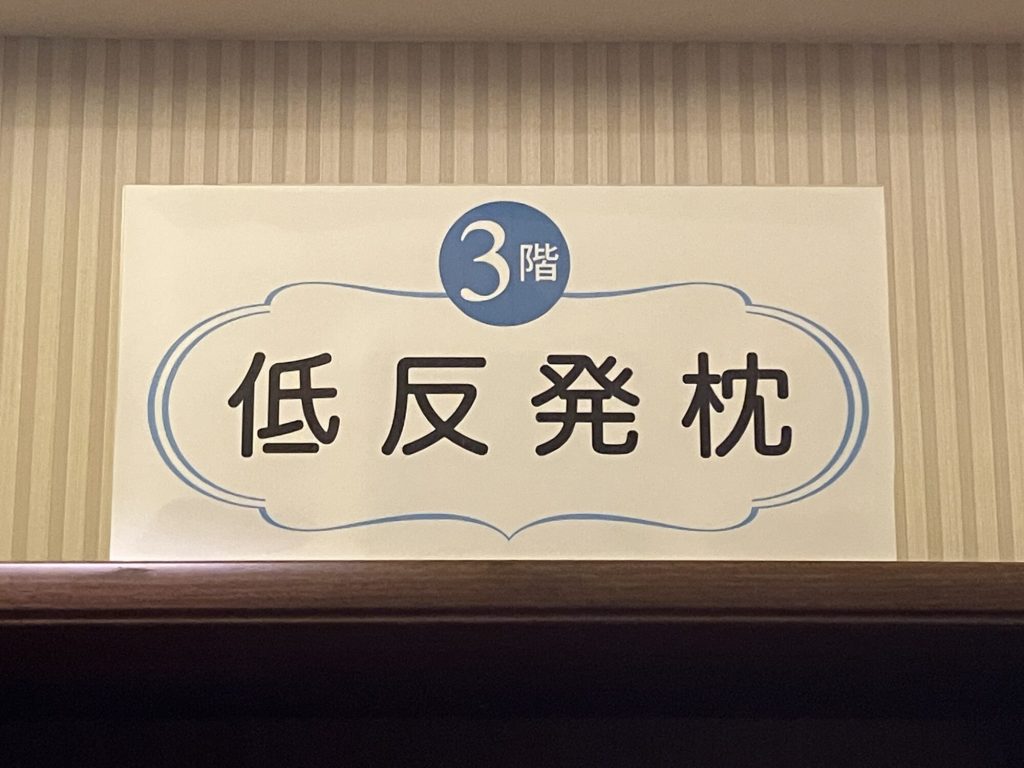 ⇒ご指摘ありがとうございます。当館では各階エレベーターホールに設置の貸出まくら棚上部に、各階層を明記いたしております。正面に大きく記載しておりますので、エレベーターお降りの際にご確認いただきたく存じます。