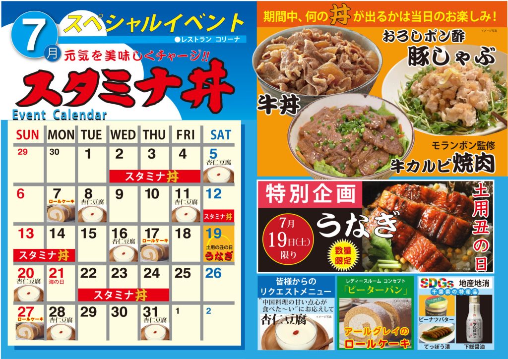 みんな大好きお肉の丼♪♪ガッツリ食べて元気に夏を乗り切りましょう!!牛肉と玉ねぎの旨味しみしみ牛丼☆あのモランボン監修の牛カルビ焼肉☆さっぱりおろしポン酢豚しゃぶ☆どれもスタッフ厳選!どの丼になるか当日のお楽しみ(*^▽^*)