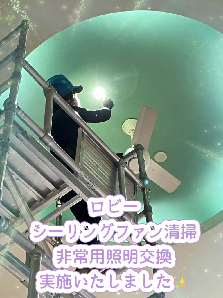 【ロビー・シーリングファン清掃及び非常用照明交換】