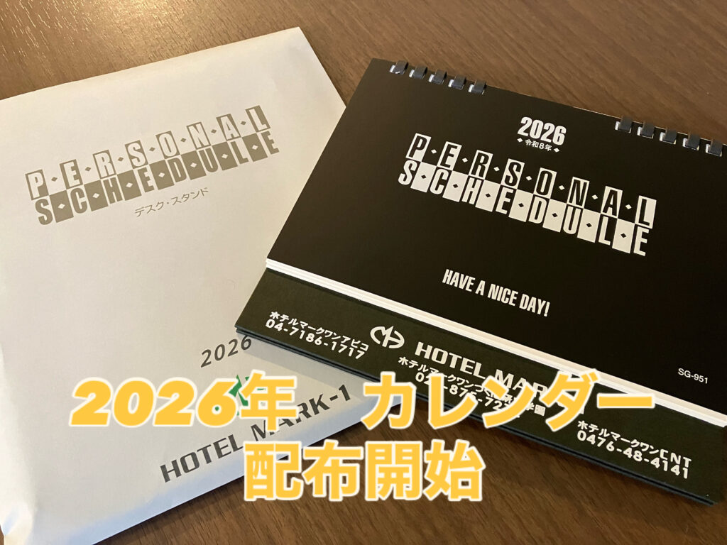 フロントにて、2026年のホテルマークワンオリジナルカレンダーを無料配布しております。