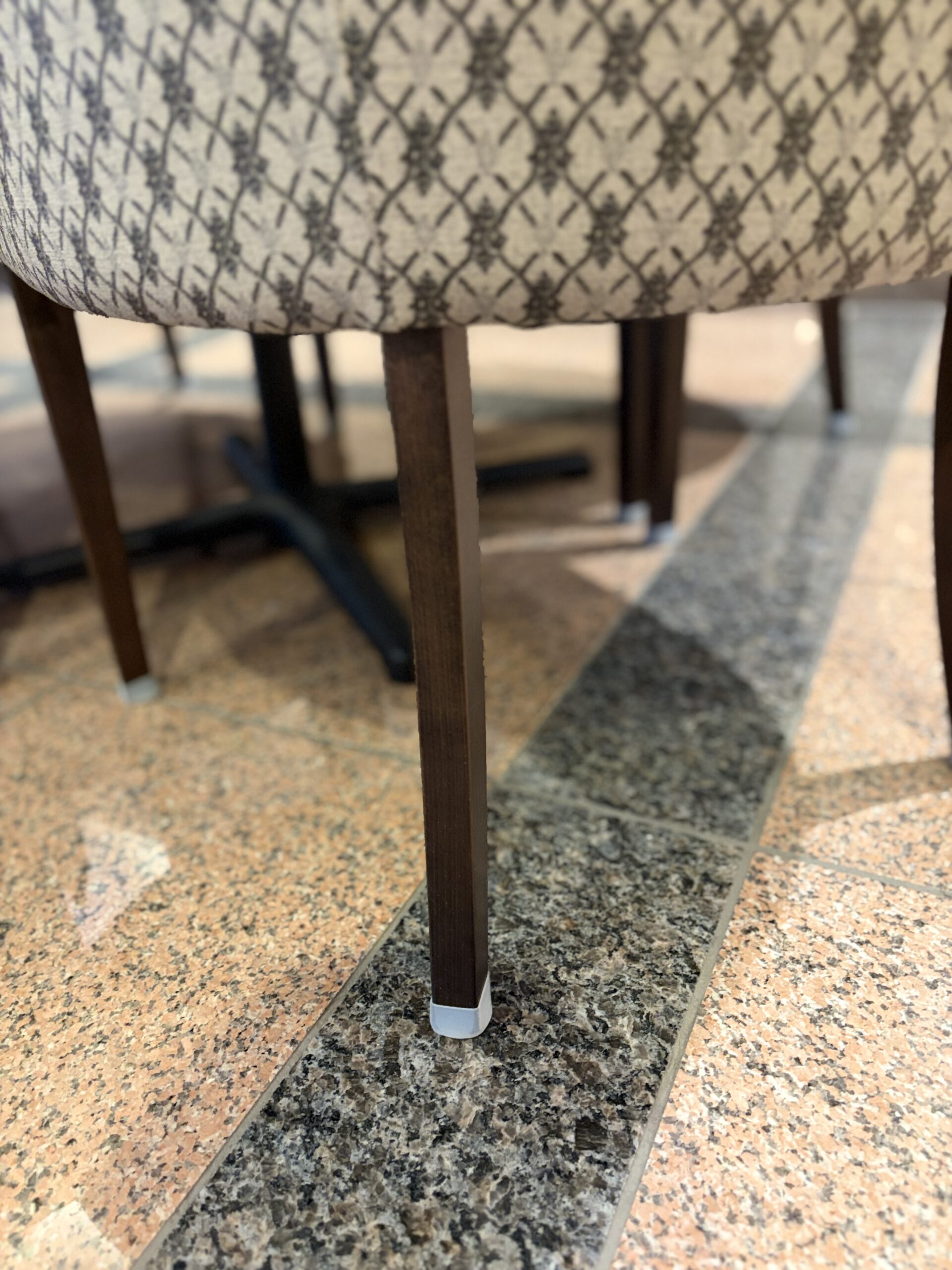 「ロビー椅子を引くと大きい音がなる」とのお声にお応えして脚にクッションを付けました!